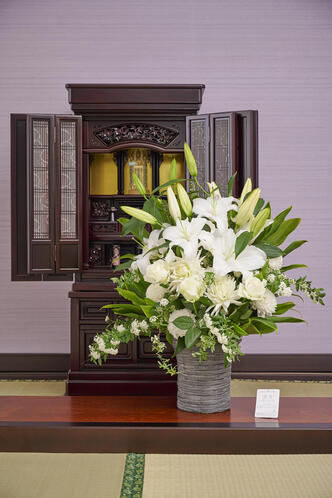 在庫あり- 供花 デザイナーズフラワー お供えユリアレンジメント 【グレースリリー】 4万円コース