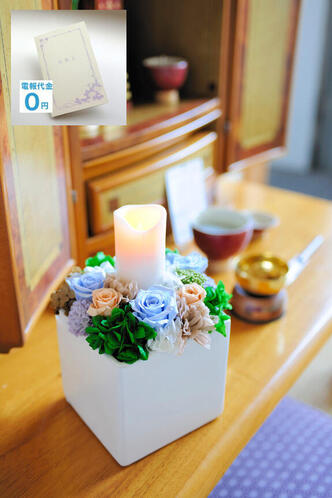 - 【電報・弔電付き】供花 プリザーブドフラワー Gently candle(LED)