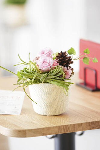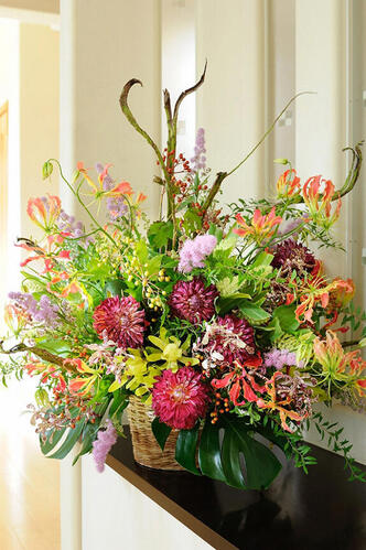 年間数千個のフラワーアレンジメントをお客様のもとに丁寧に丁寧に贈りだし続ける実績と、西名美和子のゆずれない素材へのこだわり、ぶれない技術、妥協しないクオリティから生み出される気高く、高級感溢れるデザインはシーンを選ばずお贈りいただける。