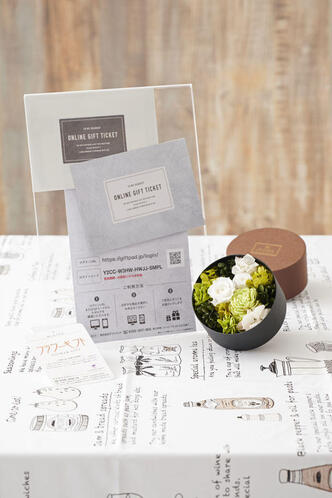 - [オンラインギフト(プラチナコース)セット]デザイナーズ プリザーブドフラワー(白・グリーン系)