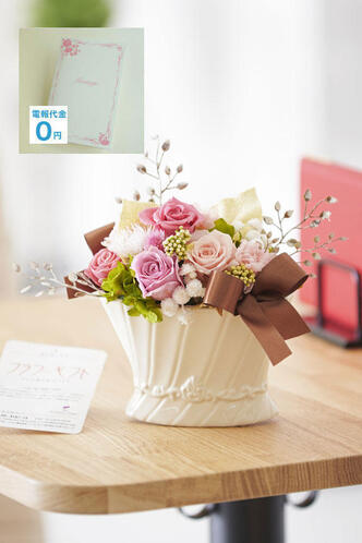 - 【電報・祝電付き】プリザーブドフラワー ゴールドポット
