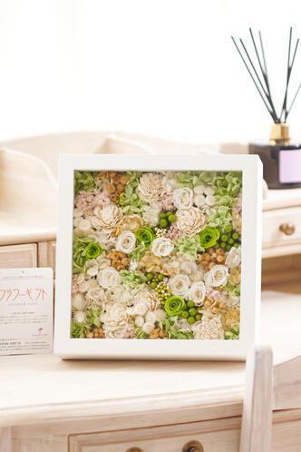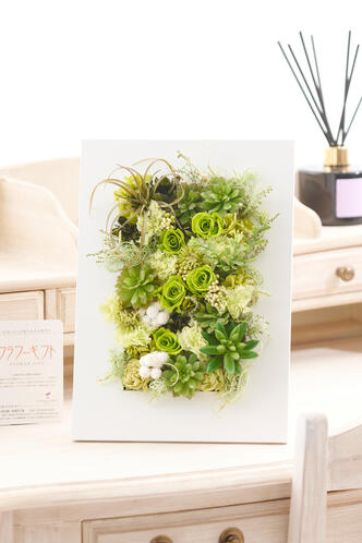 - プリザーブドフラワー ホワイトウッドフレーム 多肉植物
