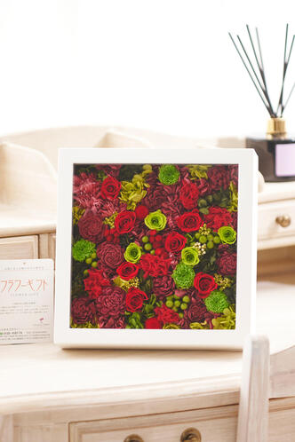 - プリザーブドフラワー glass box(白/スクエア)赤&グリーン