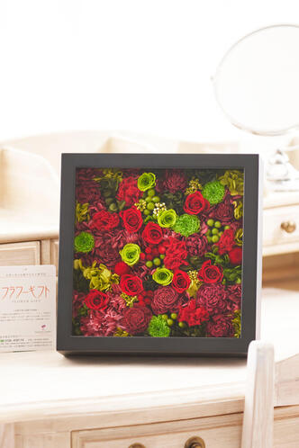 - プリザーブドフラワー glass box(黒/スクエア)赤&グリーン