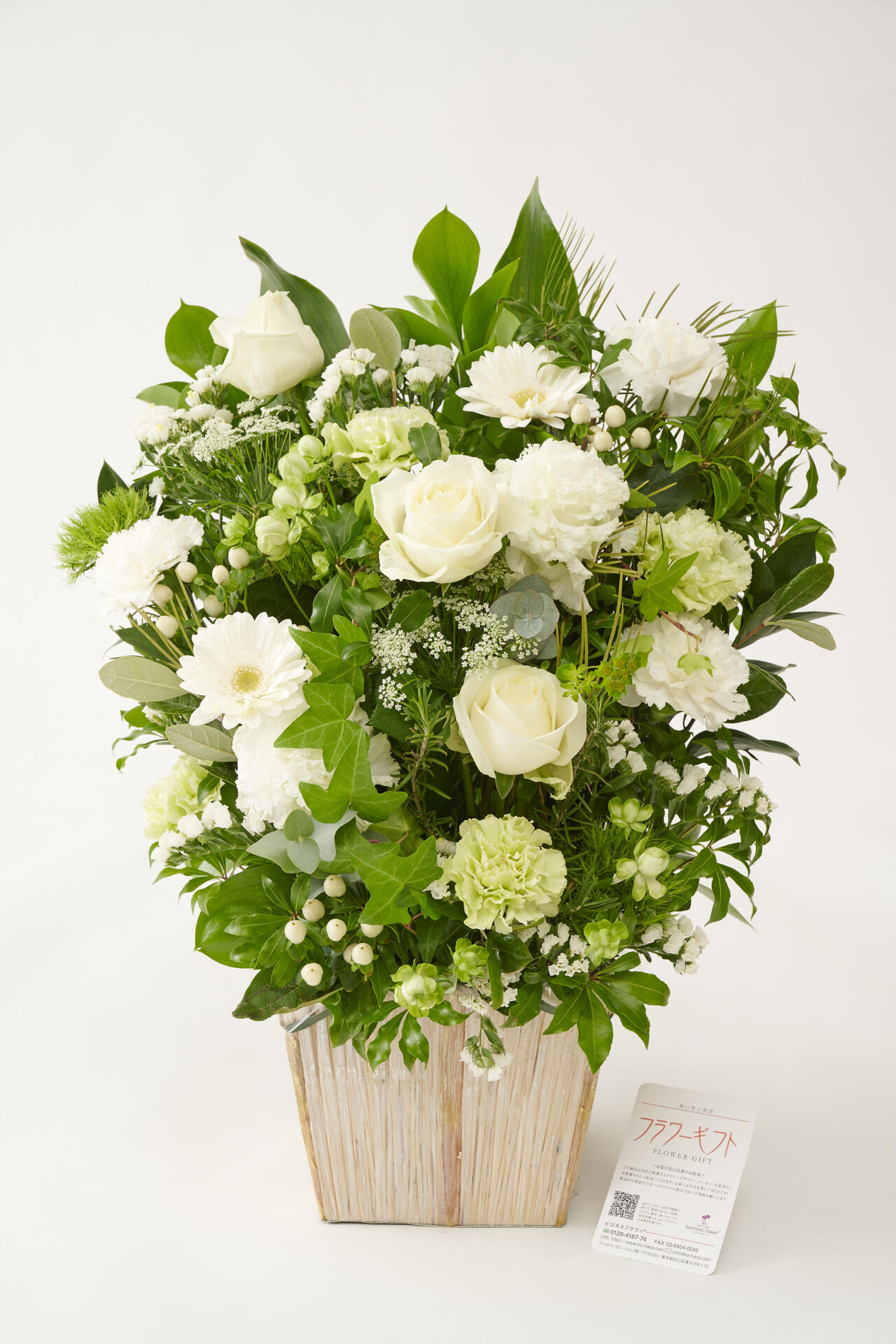 【電報・祝電付き】アレンジメントフラワー G&W Basket(グリーン・白系)
