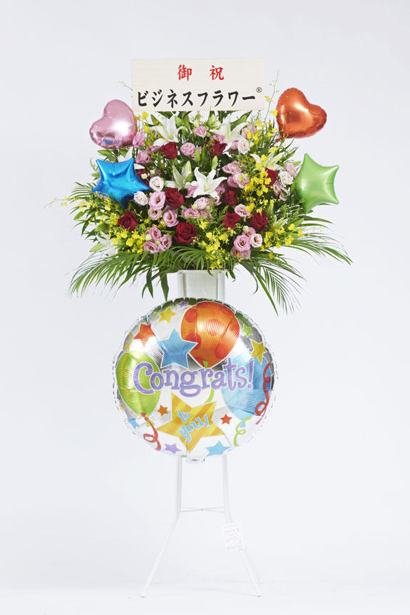 他の人のお花よりも思わず目に留まるようなものを贈りたい、特別感を演出したい際は、是非ビジネスフラワー®の「バルーン入りスタンド花」を利用ください。