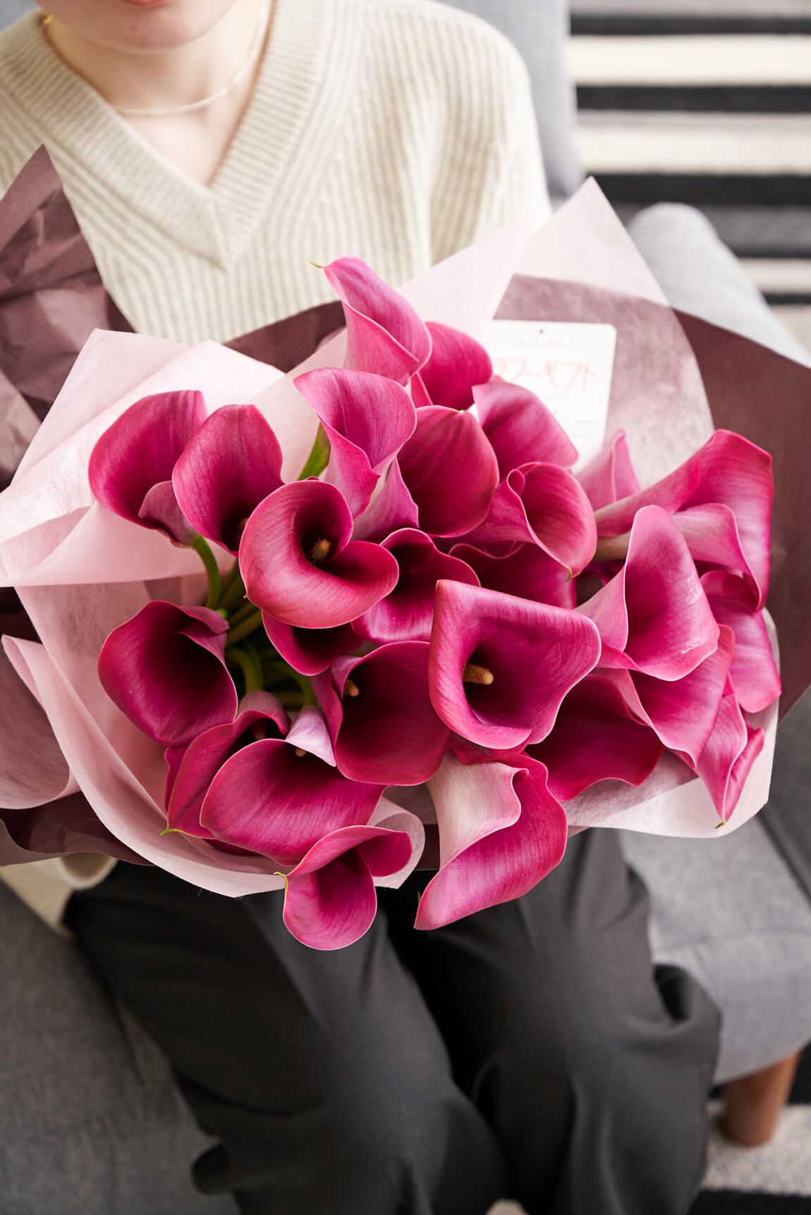 お誕生日のお花や、退職祝いのお花、発表会や個展のお祝いなど、直接手渡ししたいお祝いの花(祝花)やプレゼントの花として定番の花束(ブーケ)。