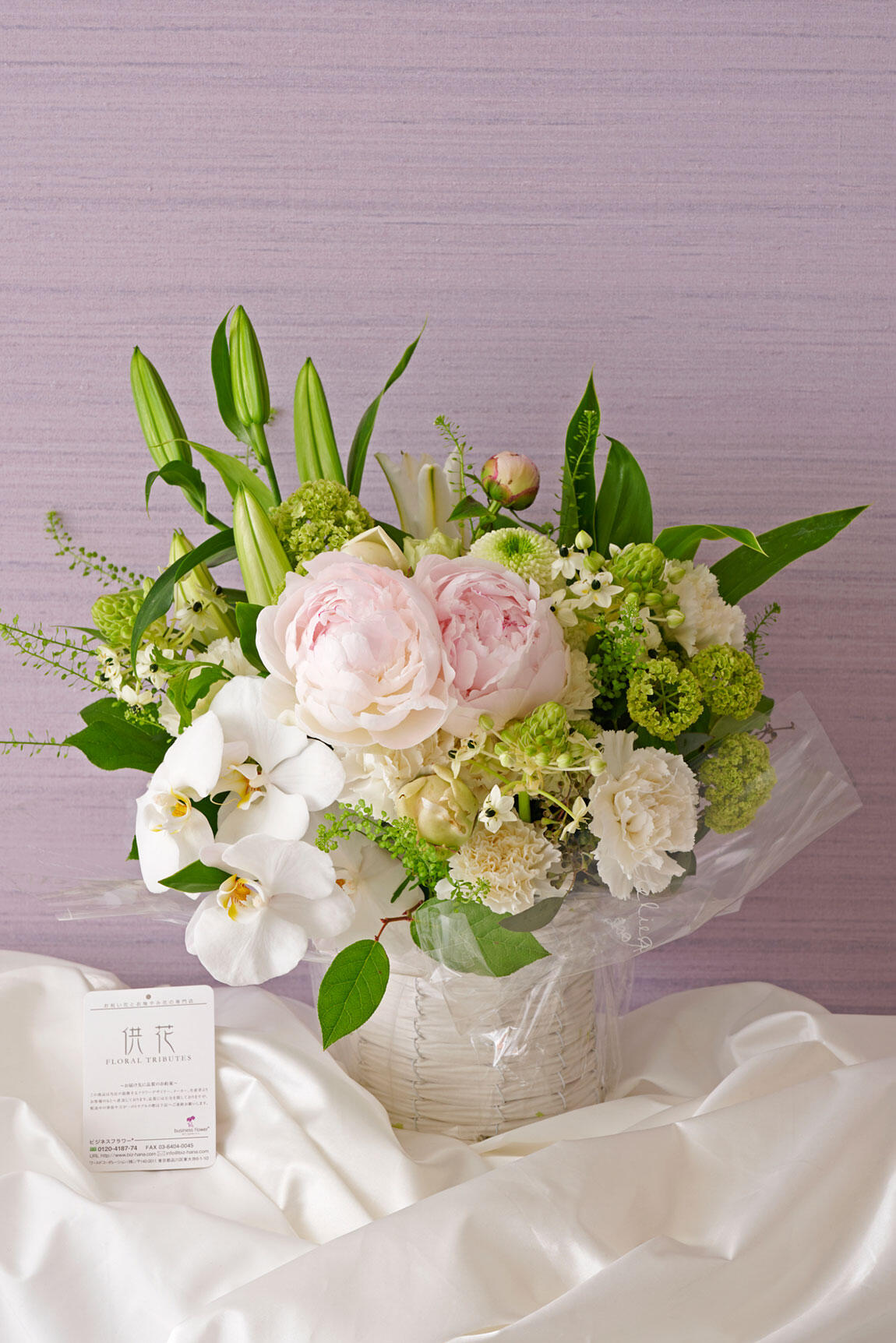 供花の通信販売店であるビジネスフラワー®では、大切なお取引様や会社から従業員のご家族へ贈る枕花や仏壇花はじめとしたご自宅にお届けする供花アレンジメントフラワー(篭花の供花)を通信販売で全国にお届けしております。