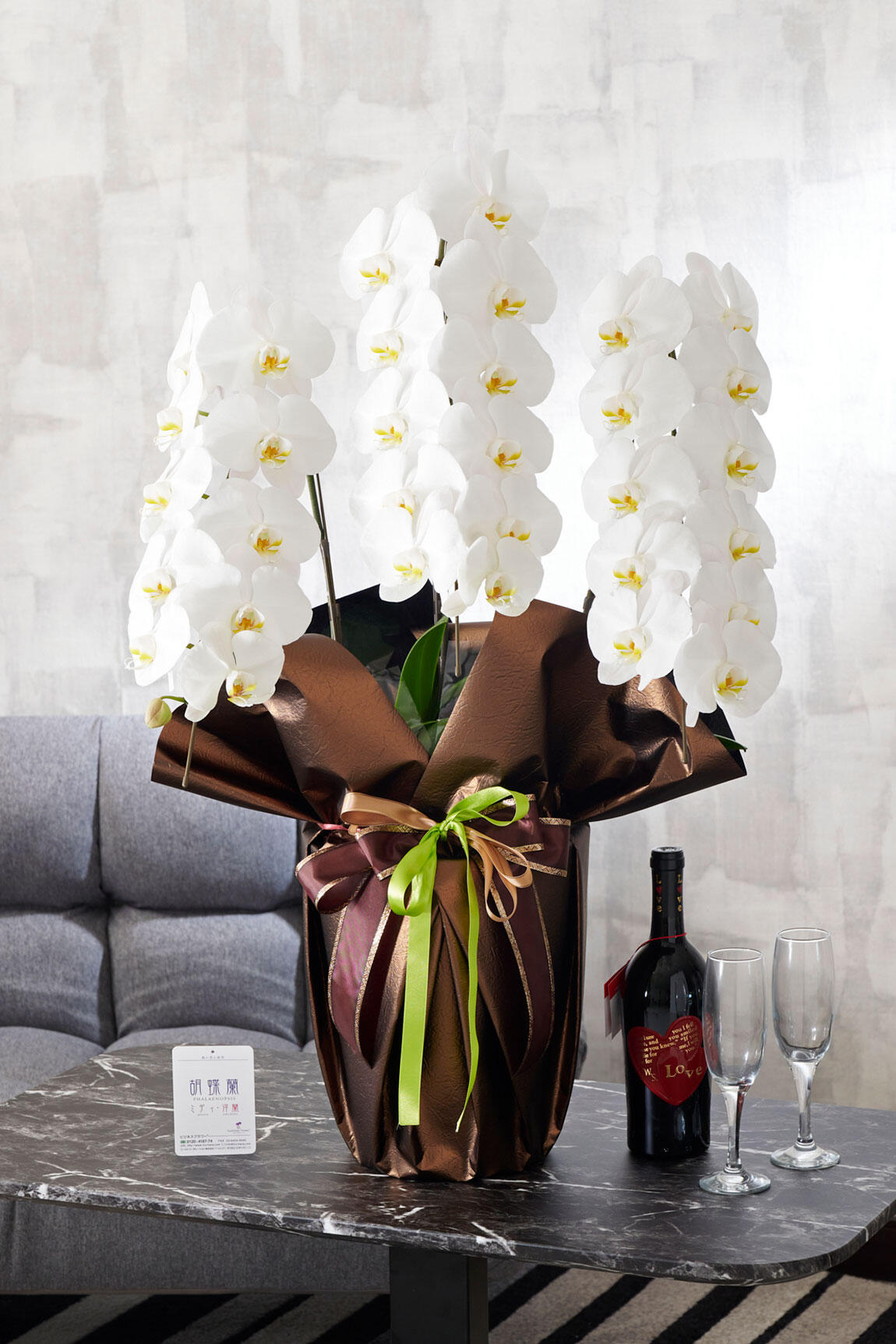 祝い花の通信販売店であるビジネスフラワー®では、お祝いの贈り物やギフトの定番である3本立ちの大輪の胡蝶蘭を全国にお届けしております。